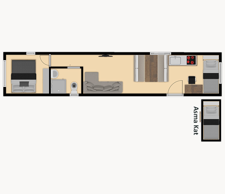 TV duvar aparatı, Giysi dolabı, Alüminyum Jaluzi perde, dış kapı üzeri sundurma)